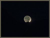 – A 6h06, dernier croissant de cette lunaison, théoriquement facilement visible à oeil nu ; de 5,40%, 48 heures et 7 minutes avant la Nouvelle Lune ; azimut 83°, hauteur 5° alors que le Soleil est à 3° sous l’horizon. Il se lève 55 minutes avant le Soleil, soit à 5h29 pour notre localisation, azimut 77° ; longitude écliptique 28e-29e BEL.