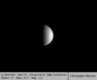 – En quadrature Ouest au Soleil le 4 juin dans le plan equatorial, elle va devenir observable à la fin de cette lunaison, lorsque la Lune aura déserté le ciel de fin de nuit.