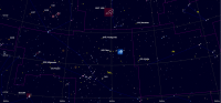 – Devant la constellation du Sagittaire de 2006 à 2023 ; diamètre apparent 0,2" (deux dixièmes de secondes d’arc), elle est passée en quadrature Est le 6-8 octobre ; elle sera conjointe au Soleil le 7 janvier.