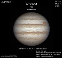 – Le 8 mars à 11h45, Terre conjoint Jupiter ; longitude 168°18’ (19e VIE) ; latitude Jupiter +1°12’ (monte). C’est l’ opposition de Jupiter en géocentrique.