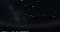 - A 12h22, la Lune est conjointe à Neptune dans le plan écliptique, la planète 1°37’ au Sud ; longitude 341°33’ (12e POI). Avant le jour, deviner la position de Neptune par rapport à la Lune ; les deux astres se lèvent vers 4h30.