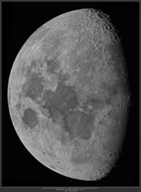– Période de libration minimale en longitude pour la Lune (L= -7,41°) ; elle nous montre son Ouest. Remarquer la mer Orientale.