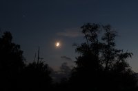 - A 6h47, la Lune est conjointe à Saturne dans le plan équatorial, la planète 3°26’ au Sud ; élongation solaire de Jupiter 61° Est. Bien visible en début de nuit le 15 et le 16 : d’un soir à l’autre, la Lune passe de la droite à la gauche de la planète.