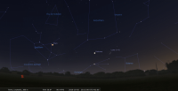 – A 4h37, la Lune est conjointe à Pluton dans le plan équatorial, Δ +3°12’ ; élongation solaire de Pluton 89° Est.