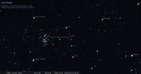– Elle est alors conjointe aux Pléiades dans le plan écliptique, à 13h54 exactement, ∆ -9°4’. Ce célèbre amas ouvert marque, de nos jours, en raison de la précession des équinoxes, le 1er degré du signe des Gémeaux (longitude moyenne de la date de l’étoile Alcyone -eta Tau- 60°13’52").