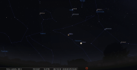 – A 3h24, la Lune est conjointe à Mercure dans le plan équatorial, Δ +2°29’ ; élongation solaire de la Lune 7° Ouest.