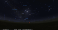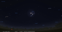 - A 21h05, la Lune est conjointe à Jupiter dans le plan équatorial, la planète 2°27’ au Sud ; élongation solaire de Jupiter 153° Ouest.
