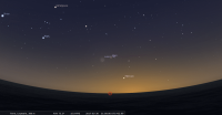 – devant la constellation du Verseau, elle est passée en conjonction au Soleil le 2 mars ; elle est désormais du matin mais ne sera pas observable avant le mois de juillet.
