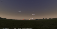- Elle se lève à à 6h24 le 3 avril et à 5h55 le 11 (pour notre localisation), soit de 65 à 100 minutes avant le Soleil.