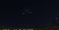 – A 9h29, la Lune est conjointe à Jupiter dans le plan équatorial, la planète 2°43’ au Sud ; élongation solaire de la Lune 93° Est. Remarquable au début des nuits précédentes et suivantes. Apprécier le déplacement de la Lune par rapport à Jupiter.