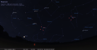 – Elle est passée en conjonction au Soleil le 14 avril ; elle se lève aux alentours de 2h30 ; elle devient observable en fin de nuit.