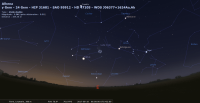 - A 12h47, la Lune est conjointe aux Pléiades (M45) dans le plan équatorial, l’amas ouvert 9°35’ au Nord. Lever peu avant 1h00.