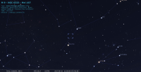– magnitude 14.2 ; diamètre apparent 0,12" (1,2 dixième de secondes d’arc). Elle est à la portée des astrophotographes entraînés en début de nuit.