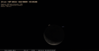 - C’est sa période de libration maximale en longitude (L= +5,21°) ; elle présente son Est au maximum : l’œil sombre du cratère Grimaldi se trouve au milieu du fin croissant..