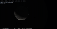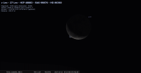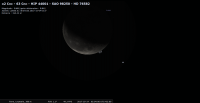 – magnitude 14.2 ; diamètre apparent 0,13" (1,3 dixième de secondes d’arc). Elle est encore dans le ciel en début de nuit.