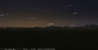 – Elle se lève aux alentours de 3h50. De magnitude +1.3, son éclat augmente ; elle est maintenant immanquable ; diamètre apparent : supérieur à 5 secondes d’arc, en augmentation.