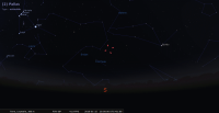 - Elle a atteint son élongation maximale le 1er janvier. Elle se lève 1 heure 45 minutes avant le Soleil le 8 janvier et 1 heure 7 minutes avant lui le 17. De magnitude -0.3, elle est bien visible à l’œil nu jusqu’au 15 janvier. Elongation 21° à 18° Ouest.