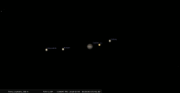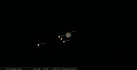 - le 16 mars, aux alentours de 4h, Io, Europe et Callisto se présentent alignés à l’Est de la planète, perpendiculairement à son plan équatorial et Ganymède ponctue la scène.