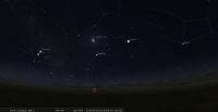 – Le 1er avril Mercure conjoint Terre à 19h46 (coordonnées moyennes de la date) ; longitude 191°57’ - 22e BAL) ; latitude Mercure +2°25’ (descend) ; c’est la conjonction inférieure de Mercure en géocentrique.