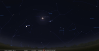 – A 20h16, la Lune est conjointe à Mars dans le plan équatorial , Δ +3°8’ ; élongation solaire de la Lune 96° Ouest.
