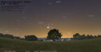 Le 30 au soir, il faut attendre une demi-heure après le coucher du Soleil avant de la voir apparaître, à 3° de Jupiter. Le lendemain lorsqu’elle se couche, est passée à la droite de Jupiter.