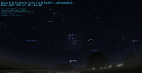 devant la constellation du Bélier (Ari) du 19 avril au 14 mai. Il arrivera alors devant le Taureau (Tau).