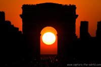 – Ce soir, à Paris, principalement demain, et encore après-demain aux alentours de 21h03, on peut voir le Soleil se coucher dans l’arche de l’arc de Triomphe vu depuis le rond-point des Champs-Elysées.