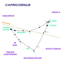 – Deneb Algedi est donc la queue de l’enfant ou la queue de la chèvre. Elle évoque le lubrique dieu Pan ! L’astérisme qu’elle forme avec Nashira, était aussi Al Sa’d al Nashirah, le “fortuné".