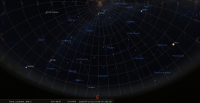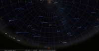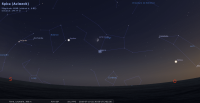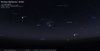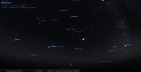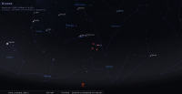 - Son élongation passe de 78° à 84° Ouest. Elle se lève aux alentours de 1h25 ; elle devient observable en fin de nuit. Magnitude 5.8.