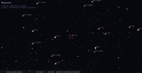 – Devant la constellation du Bélier (Ari) depuis le 27 avril dernier ; elle va y rester jusqu’au 23 mai 2024, mais fera un retour devant les Poissons du 3 décembre au 6 février prochains lors de sa prochaine rétrogradation.
