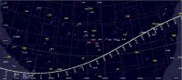 – Ci-contre, sa position devant les constellations à notre époque, jour après jour du 1er juillet, 14h (10e CAN) au 22 décembre, 13h (1er CAP) (grille équatoriale ; les planètes sont positionnées au 1er juillet). Rappelons que la précession des équinoxes décale sa position devant les étoiles d’un degré tous les 70 ans.