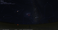 - A 10h53, la Lune est conjointe à Pluton dans le plan écliptique, la planète naine 1°9’ au Sud ; longitude 288°48’ (19e CAP). Ce soir, la Lune aide à visualiser la position de Pluton devant le Sagittaire.