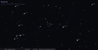 – Devant la constellation d’ Ophiuchus (Oph) depuis le 7 novembre, elle revient devant le Scorpion (Sco), en raison de sa rétrogradation, le 25 novembre à 8h31, à la longitude 247°51’ (8e SAG), latitude +0°12’, monte. Elle s’y trouve jusqu’au 29 novembre à 6h39, où elle arrive devant la Balance (Lib), à la longitude 242°34’ (3e SAG), latitude +1°29’, monte ; c’est devant cette constellation qu’elle reprendra son mouvement direct le 6 décembre ; elle sera de nouveau devant le Scorpion (Sco) le 15 décembre et devant Ophiuchus (Oph) le 20 décembre.