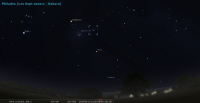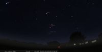 En début de nuit, l’ensemble est du côté de l’Ouest à une cinquantaine de degrés de hauteur et se couche aux alentours de 1h.