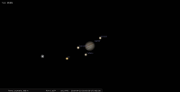 – A 16h26, la Lune est conjointe à Saturne dans le plan équatorial, la planète 0°22’ au Nord ; élongation solaire de Saturne 105° Ouest. Au cours de la nuit précédente, la Lune se lève aux alentours de 2h35 pour notre localisation, suivie par Saturne, 22 minutes plus tard ; à l’orée du jour, les deux astres sont au Sud-sud-est, à une vingtaine de degrés de hauteur.