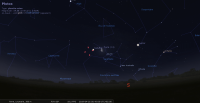 – A 21h49, la Lune est conjointe à Pluton dans le plan équatorial, Δ +0°4’ ; élongation solaire de la Lune 102° Ouest.