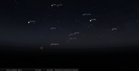 – Ci-contre, sa position devant les constellations à notre époque, jour après jour du 1er mars, 0h TU (11e POI) au 2 septembre 2019, 0h TU (10e VIE) (grille équatoriale ; les planètes sont positionnées au 1er mars.
