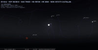 – A 1h12, la Lune est conjointe à Uranus dans le plan équatorial, la planète 4°44’ au Nord ; élongation solaire d’Uranus 10° Ouest.