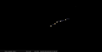 – A 18h32, elle est conjointe à Regulus dans le plan écliptique, ∆ +2°52’ ; longitude (moyenne de la date) 150°6’10". Régulus marque de nos jours, l’entrée (des astres sur l’écliptique) dans le signe de la Vierge. A 22h30, les deux astres sont une cinquantaine de degrés de hauteur environ au Sud-ouest ; ils se couchent aux alentours de 3h30.