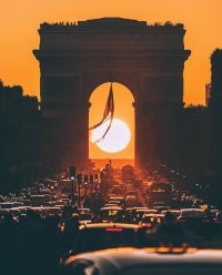 – A Paris , ce soir, on peut voir le Soleil se coucher dans l’arche de l’arc de Triomphe depuis le Rond Point Champs Elysées.
