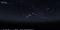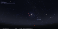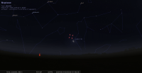 Elle traverse la voûte céleste en compagnie de Jupiter en 8 heures environ. Les deux astres culminent à moins de 25° de hauteur.