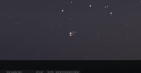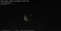 - A 5h46, la Lune est conjointe à Saturne dans le plan équatorial, la planète 0°26’ au Nord ; élongation solaire de Saturne 159° Ouest. Ce soir pour notre localisation, les deux astres se lèvent aux alentours de 23h00 et culminent aux alentours de 3h00, en compagnie de Nunki ; au cours de la nuit on peut constater que l’écart angulaire entre la Lune et Saturne se resserre et que celui entre la Lune et Nunki s’agrandit.