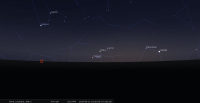 Le 17 au soir, elle apparaît à l’Est-sud-est quelques minutes après le coucher du Soleil.