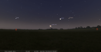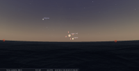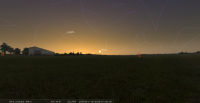 – A 18h26, Mercure parallèle Vénus (plan équatorial 22° N)