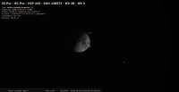 - De 18h54 à 20h18 pour notre localisation, la Lune occulte l’étoile 33 Psc (Poissons, magnitude 4.6). L’étoile disparaît du côté sombre et réapparaît du côté éclairé du croissant de Lune puisque cette dernière est croissante. Sa portion éclairée est de 64% ; à la réapparition de l’étoile, les deux astres viennent de passer leur culmination ; ils sont à 39° de hauteur environ.