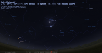 - A 1h04, la Lune est conjointe à Pluton dans le plan équatorial, la planète naine 0°39’ au Nord ; élongation solaire de Pluton 10° Ouest.
