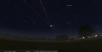 - A 17h09, la Lune atteint sa déclinaison maximale : +23°15’57" (Nord) par rapport au plan de l’équateur céleste ; ascension droite 6h52m ; longitude écliptique 101°59’ (12e CAN), latitude +0°22’ (monte). Elle culmine au plus haut dans l’hémisphère Nord, à 68° de hauteur pour la latitude terrestre 45°N, aux alentours de 23h00.