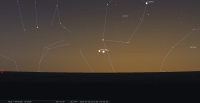 - A 4h01, la Lune est conjointe à Mars dans le plan équatorial, la planète 2°45’ au Nord ; élongation solaire de Mars 83° Ouest.