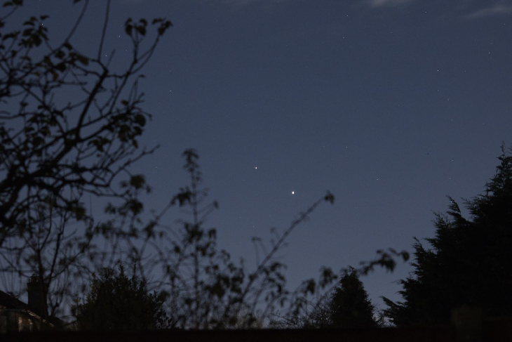 Les deux astres sont à 5° de hauteur environ au Sud-est.