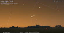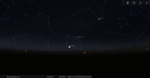 les deux astres sont alors à 26° de hauteur au Sud-est ; la portion éclairée de la Lune est de 16%